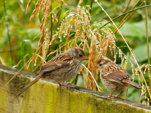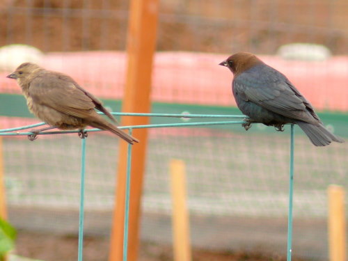 Female (left) and male Brown-headed Cowbird at the Community Gardens