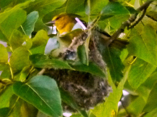 Female Bullock's Oriole at the nest. Photo by Ollie Oliver |