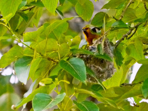 Male Bullock's Oriole at the nest. Photo by Ollie Oliver |