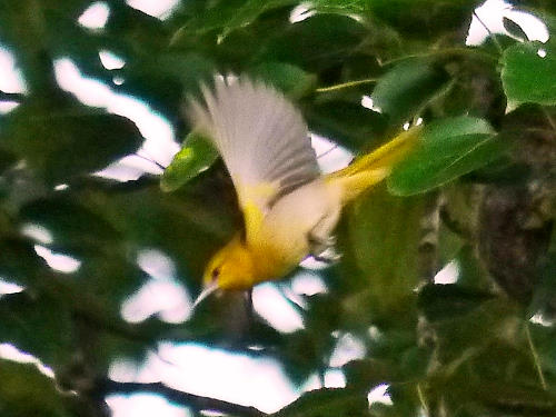 Female Bullock's Oriole in flight. Photo by Ollie Oliver