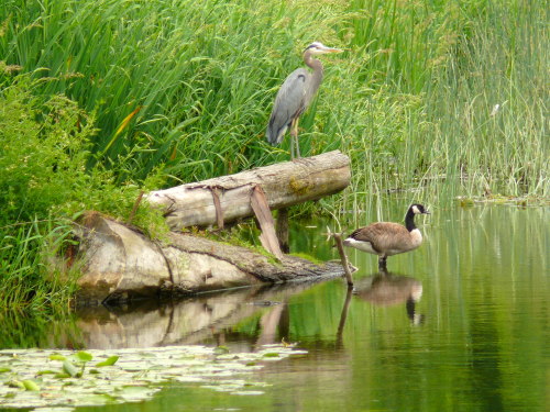 Our day's only Canada Goose with a Great Blue Heron near the windmill