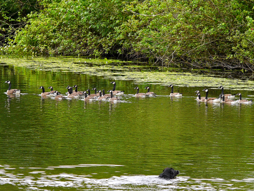Female Wood Duck with Ducklings. Photo by Brian Dobbins, June 26 |