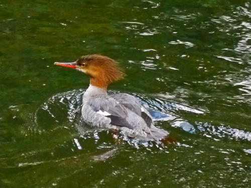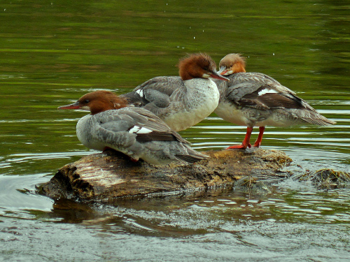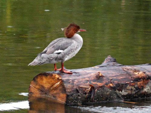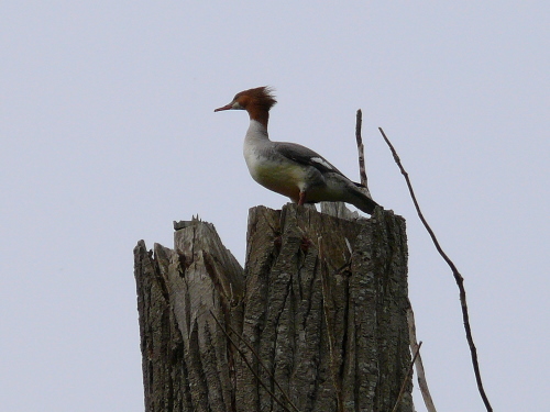 A female COMMON MERGANSER sat atop some of the chopped snags in Snag Row, which is comical to see.