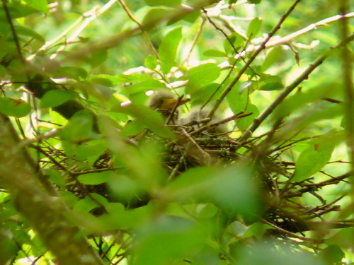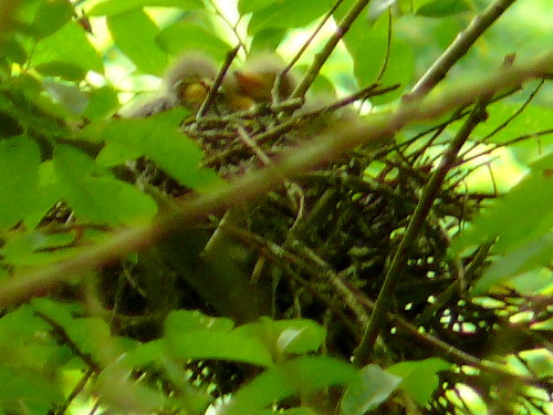 Four babies were seen in the nest (three beaks visible in this photo) |