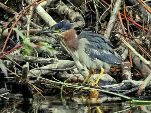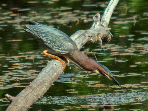 - Green Heron - Two present, and heard them call about 4 times. Slough below the weir, and later from the Lake Platform