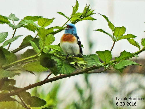 LAZULI BUNTING Male singing north of fields 7-8-9