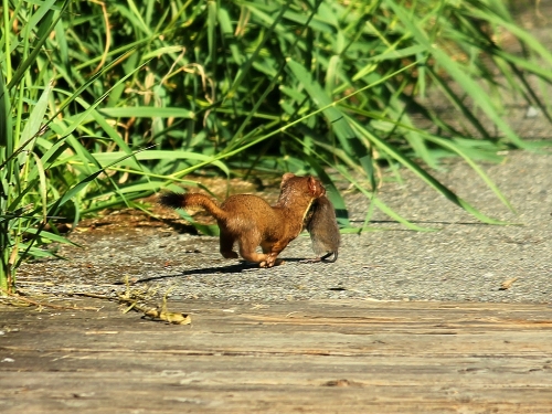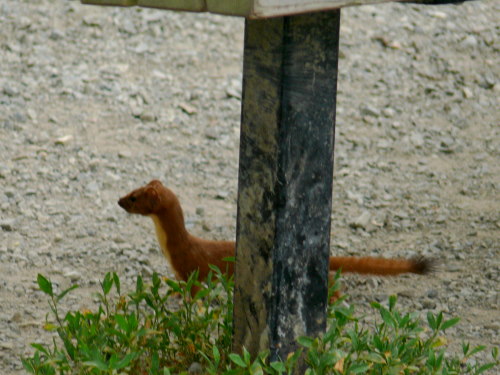 The biggest excitement today was an extremely close encounter with 2 LONG-TAILED WEASELS at Dog Central that came up to with 10 feet of us. They were busy chasing each other around, paid us no mind at all, and forgot to worry about dogs until almost too late.