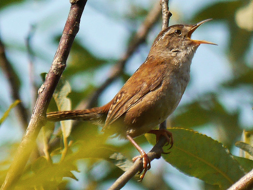 - House Wren – much quieter today. Seen and heard near Pea Patch, including singing from atop a bird box