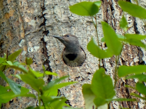 The first highlight was a BULLOCK'S ORIOLE nest, with both parents bringing food back to squeaking babies inside. The nest was just east of the 3rd dog swim beach in a cottonwood. This is only the 3rd time we've found an oriole nest at the park, the others being in 2004 and 2006 over at the Rowing Club. (Two other years we've seen adults feeding fledged juveniles, so they probably nested at least near the park those years, if not somewhere we didn't find within the park).