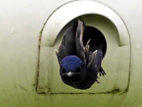 Female (left) and male Purple Martins. Photos by Brian Dobbins, June 26. |