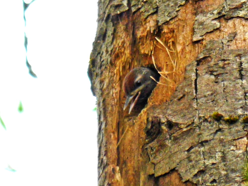 BLACK-CAPPED CHICKADEES were seen bringing food to, and taking a fecal sac away from a nest hole in one of the easternmost trees in Snag Row.
