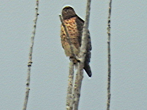 - MERLIN - One streaked towards the lake; Tree Swallow calls alerted us to its passage