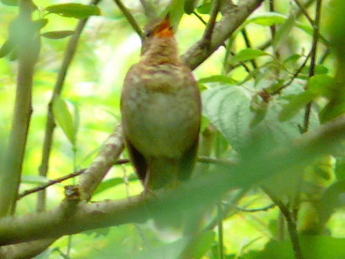 A morning with a solid overcast, but no precipitation and seldom any wind. Late June often starts the "doldrums" that usually continue through July. These are characterized by a paucity of surprises, coupled with the tailing off of bird songs and the departure of some of our breeding birds; it can sometimes get quite dull. But apparently that hasn't started yet. Today had several unexpected species, and we still had songs from pretty much all of the expected birds.