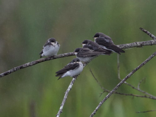 Baby Tree Swallows huddling in the rain. Photo by Tony Ernst