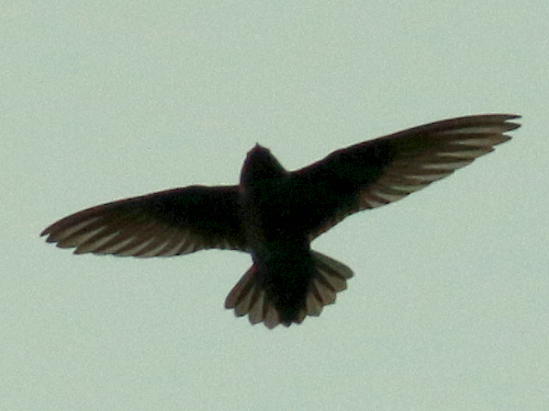 I had one BLACK SWIFT that challenged my identification skills as it was flying in a straight line flapping continuously.