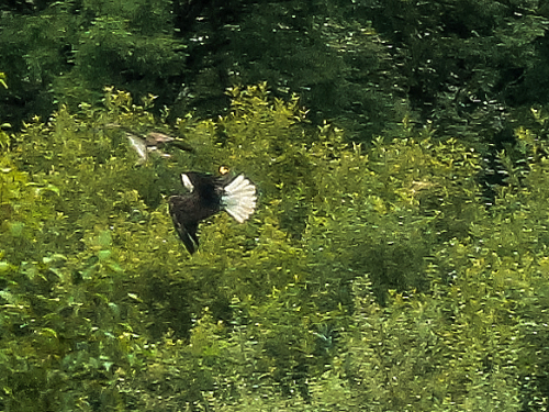 We had our first-ever July sighting of PILEATED WOODPECKER, calling and seen flying west of the park.