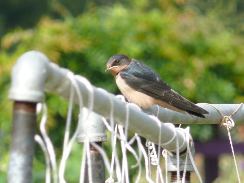 Juvenile Barn Swallow in Pea Patch. Note visible, fleshy gape.