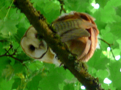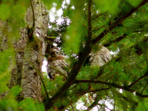 Sharon Aagaard found a juvenile BARN OWL in the maple tree next to the nest box, straight above the path. The rest of us had given up on finding one. It appears that only a single baby was fledged this year from the nest box.
