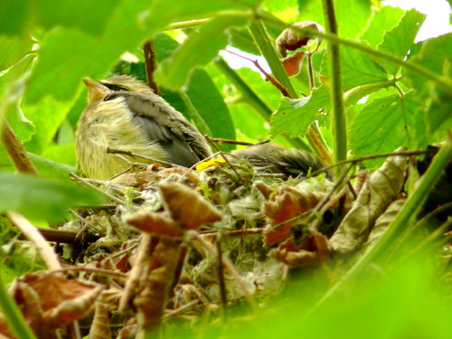 Cedar Waxwing Nest with 2 young at S. end of dog area