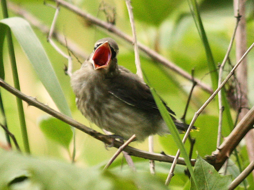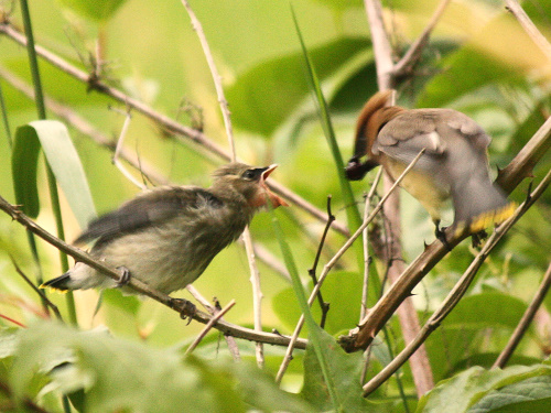 "Feed me Seymour". Juvenile Cedar Waxwing, begging. Photo by Lillian Reis