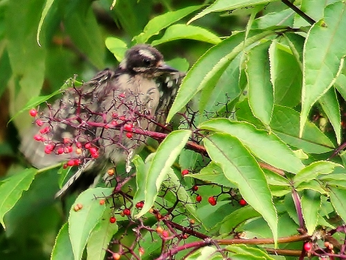 We had 1 or 2 juvenile RED-BREASTED SAPSUCKERS. One was getting red on the face, but the rest of the head was still dark gray.