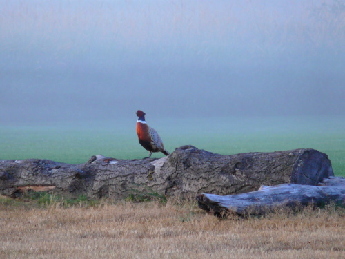 The male RING-NECKED PHEASANT was seen early on the grass fields, and heard later.