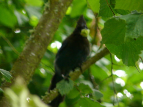 We had a STELLER'S JAY already going after the very green Hazelnuts