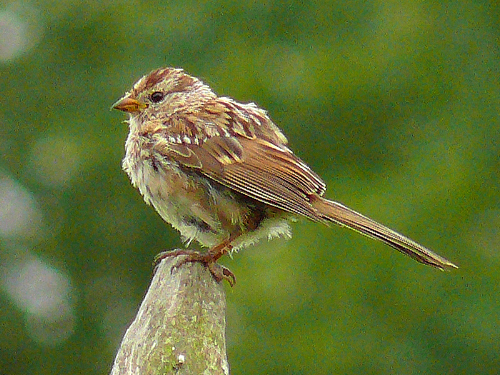 Juvenile White-crowned Sparrow (still in juvenal plumage). Photo by Ollie Oliver |