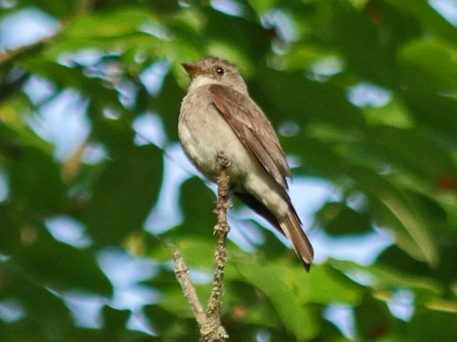 We had a very fine morning, with temperatures never getting too warm despite the full sun and the Excessive Heat Warnings. And while singing has become almost non-existent (except for Swainson's Thrushes), there were plenty of birds around. We are seeing strong evidence of post-breeding dispersal, with many birds today that we haven't had in weeks or months.