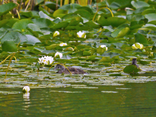 The first highlight were three RIVER OTTERS actively fishing (or crawfishing perhaps) in the slough above the weir. They gave a great show.