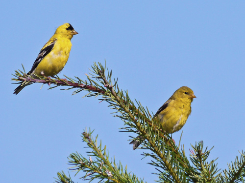 Male (left) and female American Goldfinch. Photo by Ollie Oliver |