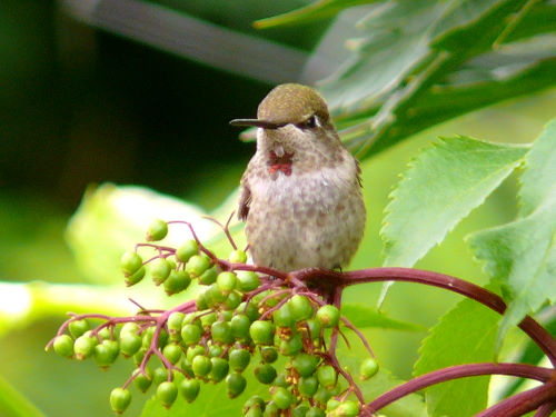 Female Anna's Hummingbird on a Red Elderberry in the Community Gardens |