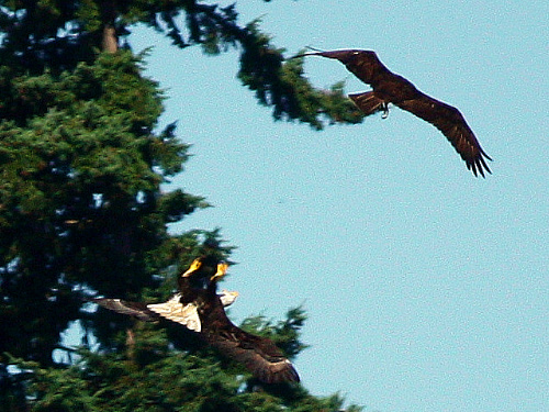 Eagle turns tables on a crow. Photo by Lillian Reis, 2010-07-27 |