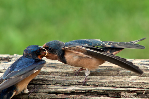 Adult Barn Swallow feeding young, 2011-07-20. Photo by Dasha Gudalewicz |