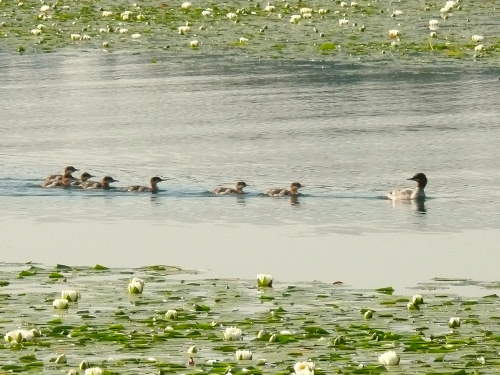 - Gadwall – female and two ducklings in the slough below the Rowing Club dock. Only our 2nd sighting in seven weeks