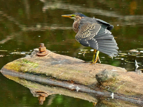 - Green Heron – juvenile below the weir, adult at Rowing Club pond