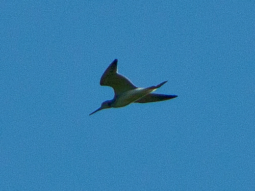 Greater Yellowlegs circling over the lake platform. Photo by Ollie Oliver |