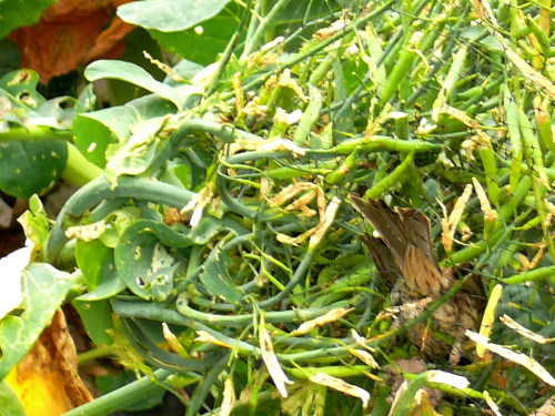House Finch caught in netting a the Pea Patch (we freed it) |