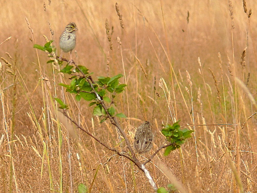 Simultaneous front and back views of Savannah Sparrow in the East Meadow