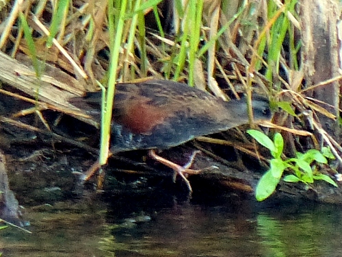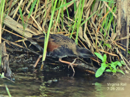 We also had our first SPOTTED SANDPIPER of 2008, which flew down to the weir. In the cattails just upstream of the weir, Mark spotted a VIRGINIA RAIL. We seldom get to *see* them.