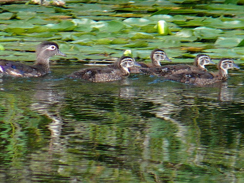 - Wood Duck - Female with six tiny ducklings
