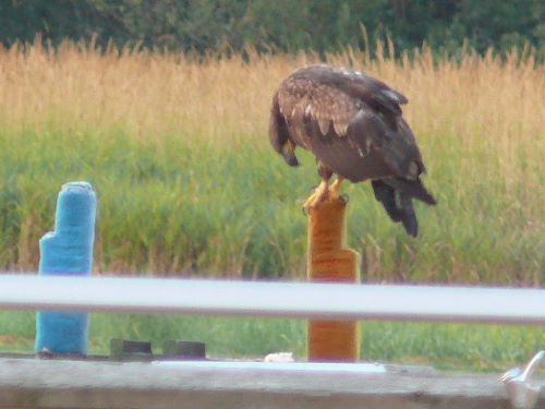 Juvenile Bald Eagle having breakfast at the model airplane field