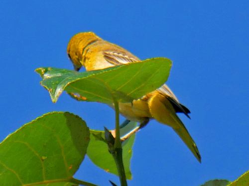 We had a juvenile(?) BULLOCK'S ORIOLE, our latest sighting ever for that species. We've never had orioles in August-April, so it will be a surprise if we see one next week.