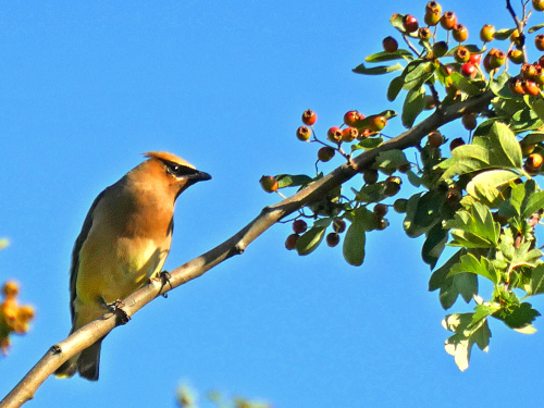 BUSHTITS and CEDAR WAXWINGS were especially ubiquitous and numerous; the vireos were hidden among a flock of about 50 Bushtits, and we saw several other large flocks other places.