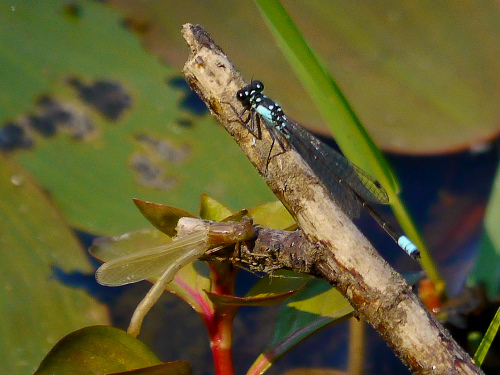 Spotted Sandpiper 2-3 on lily pads in slough