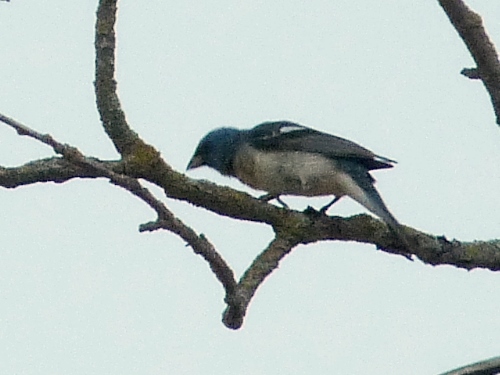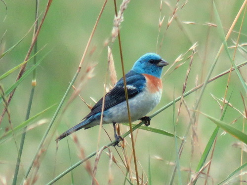 At the south end of the Dog Meadow, we had 1-2 juvenile LAZULI BUNTINGS being fed by a female. Later, we had a male Laz at the east end of Snag Row.