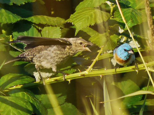 Adult female and juvenile Lazuli Bunting |