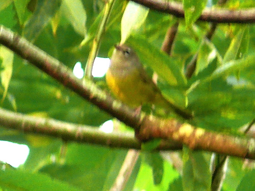 Blurry photo day. This is a female and/or immature MacGillivray's Warbler