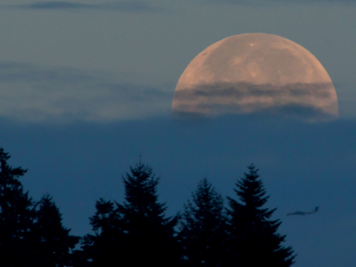 There were eleven of us today, I think, on a beautiful birdy morning. The early scattered ground fog didn't hide an impressive sunrise on Mt. Rainier, nor the waining moon in the deep blue sky. Warbler migration, or at least post-breeding dispersal, is apparently well underway - we had a six-warbler morning. Other highlights included the Blue Angels doing an overflight of the East Meadow, as well as flybys of other airplanes involved in the SeaFair display.