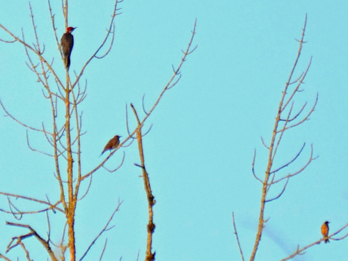 - Purple Martin - Lots of activity at the gourds and across the slough from the Big Cottonwood Forest. A dozen or more